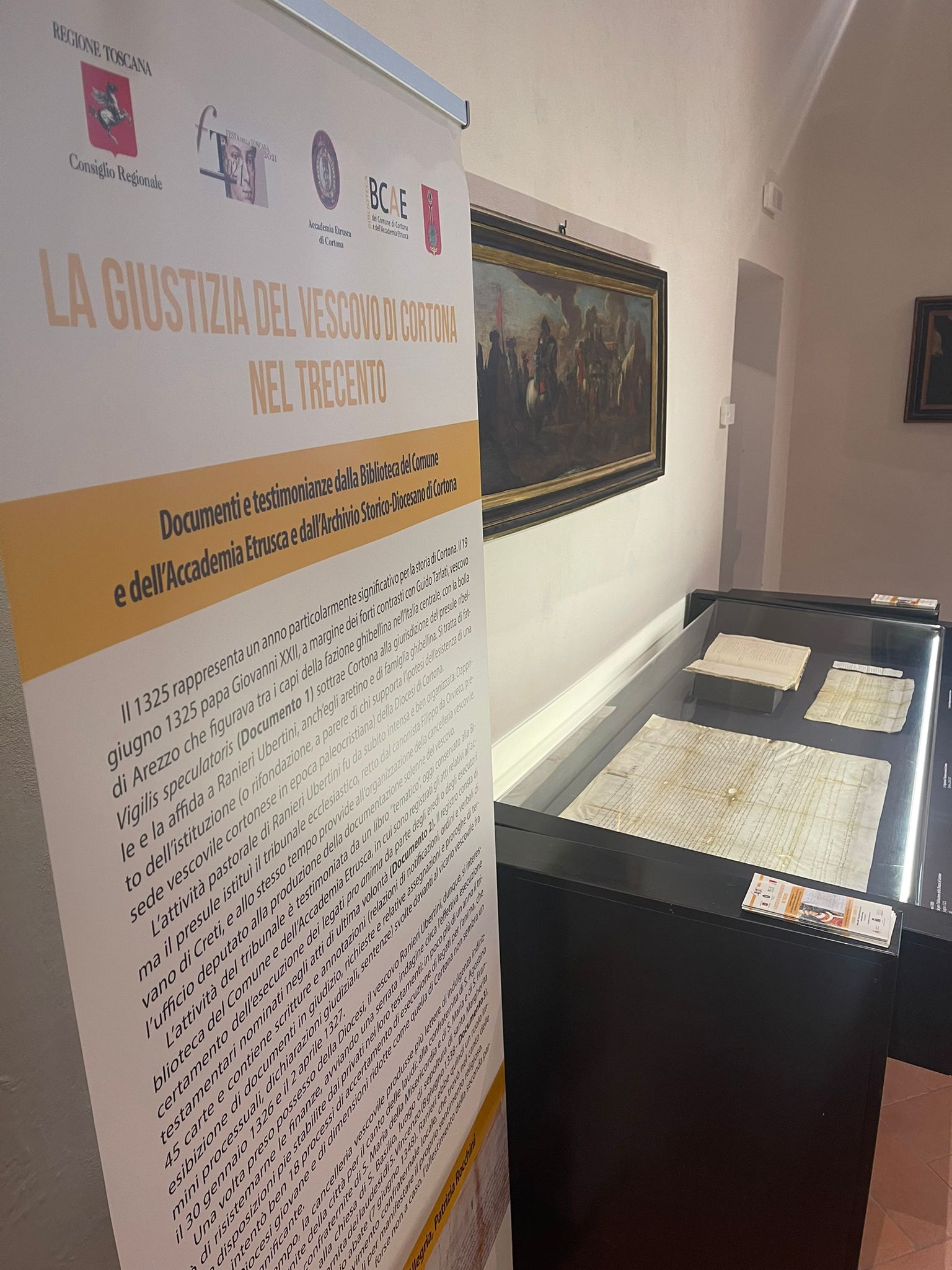 «La giustizia del vescovo di Cortona nel Trecento» è il titolo della mostra visibile al Maec fino al prossimo 2 giugno. L’iniziativa è dell’Accademia Etrusca, della Biblioteca di Cortona e dei Lions Club Cortona Valdichiana Host e consiste nell’esposizione di alcuni documenti importanti per la storia di Cortona.